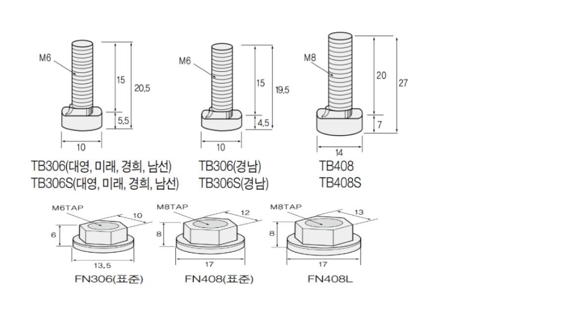 사이즈(Size) | M6*10 , M8*15 M8*12 , M8*23 |