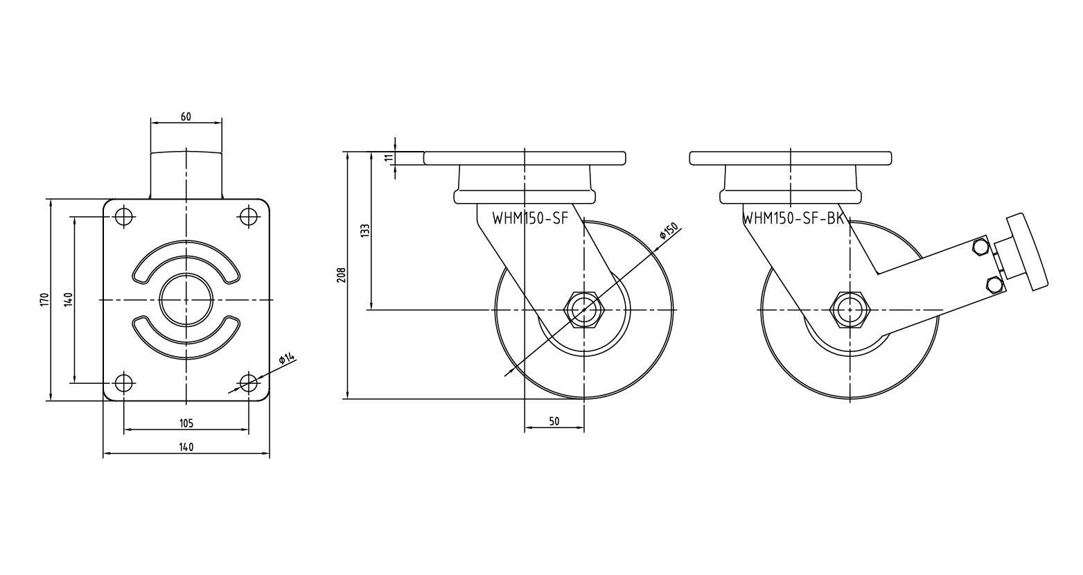 1,400Kg | 4,000Kg | Ø200 | 60 | 208 | 50 | 170x140 | 140x105 | Ø14 | 8.2Kg |