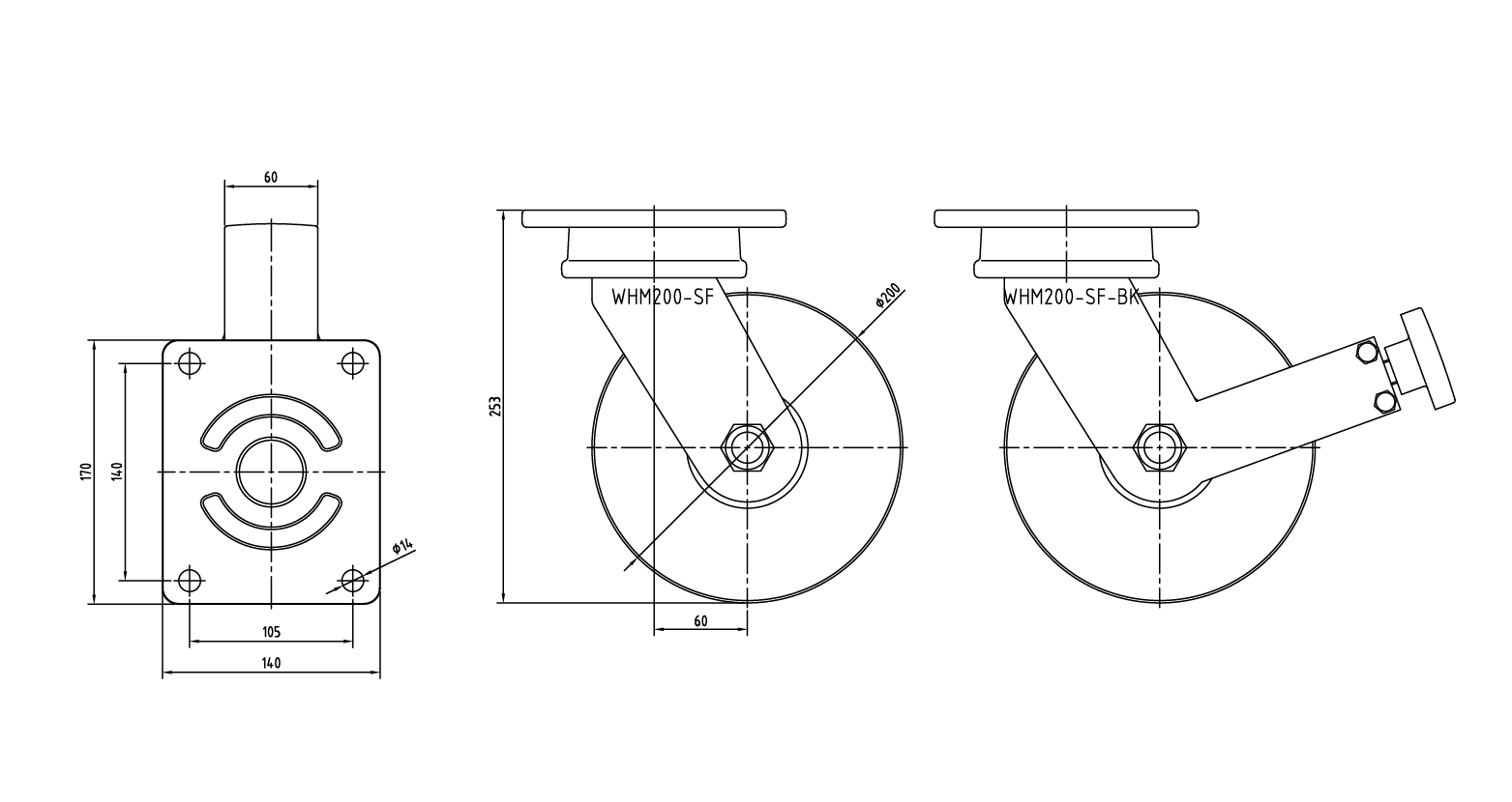 1,700Kg | 5,000Kg | Ø200 | 60 | 253 | 60 | 170x140 | 140x105 | Ø14 | 9.5Kg |