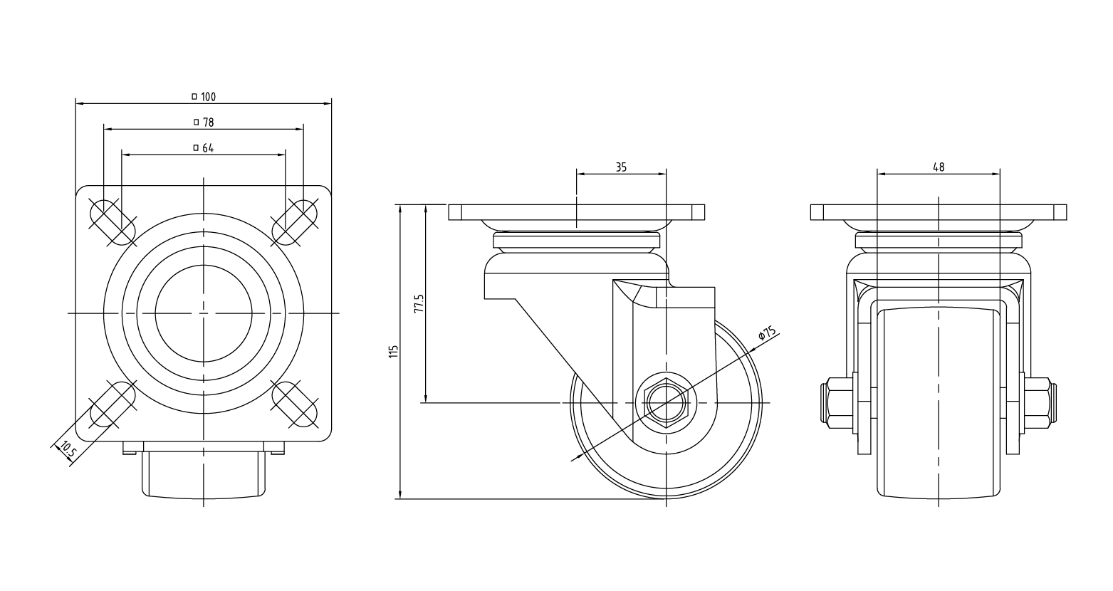 | WPHS-75SF | 600Kg | 1,800Kg | Ø75 | 48 | 115 | 35 | 100*100 | 78*78 64*64 | Ø10.5 | 1.5Kg |