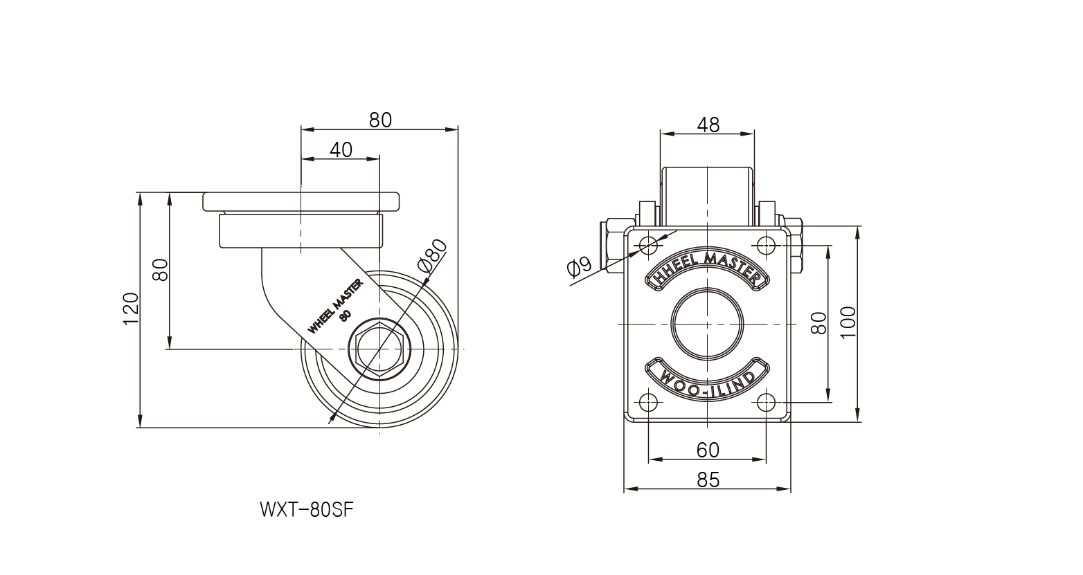 500Kg | 1,500Kg | Ø80 | 48 | 120 | 40 | 100x85 | 80x60 | Ø9 | 2.54kg |