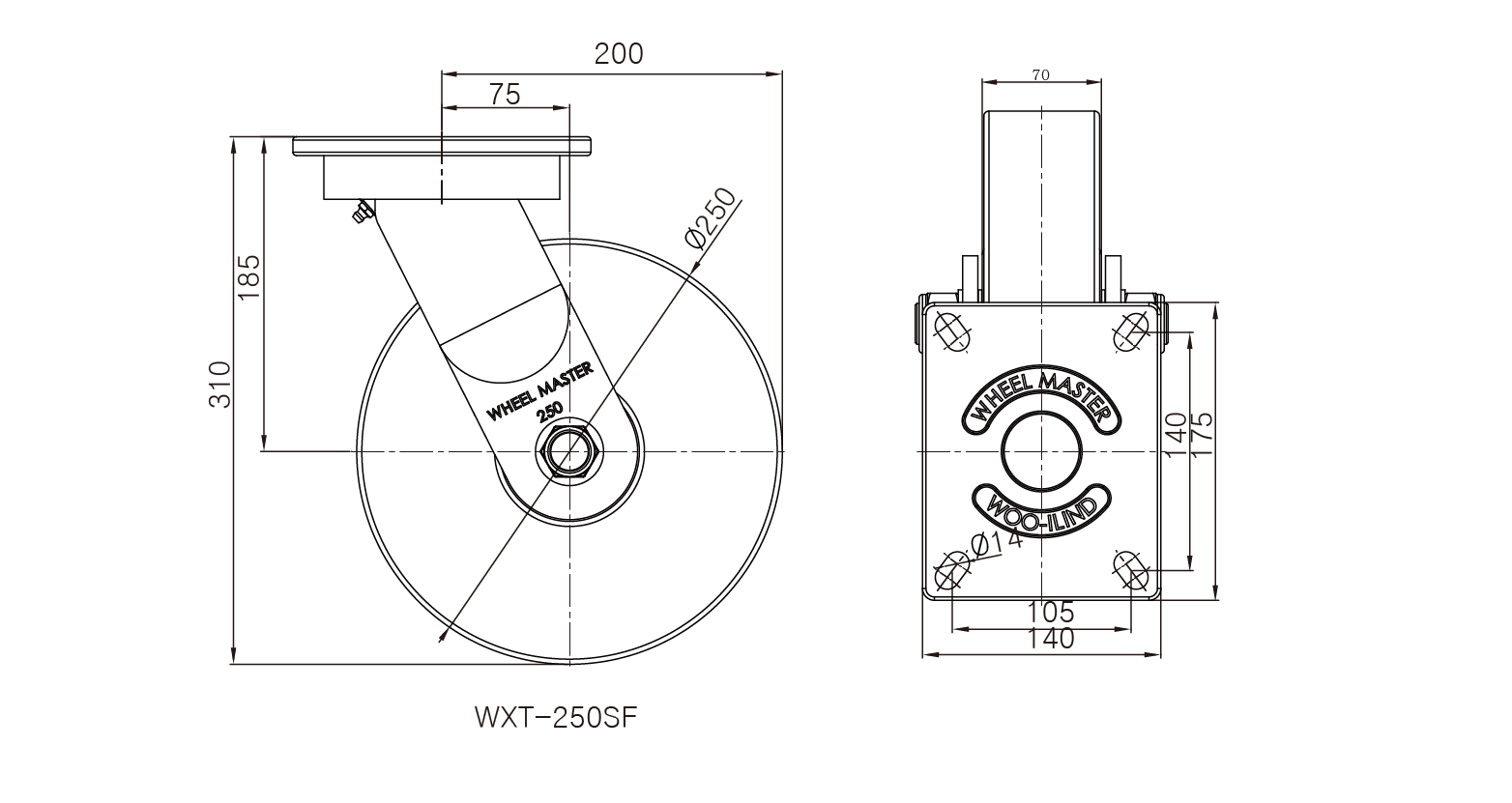 2,700Kg | 8,100Kg | Ø250 | 70 | 310 | 75 | 175x140 | 140x105 | Ø14 | 12.5kg |